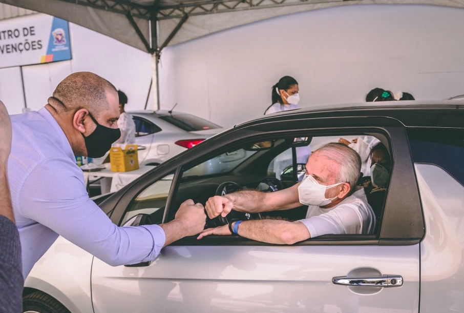 "Hoje fui acompanhar a vacinação contra a covid-19 para pessoas com 67 anos que agendaram previamente no site da prefeitura. A imunização está acontecendo na Arena de Eventos em sistema drive-thru e com extrema organização", comentou Marcos Tonho nas redes sociais.